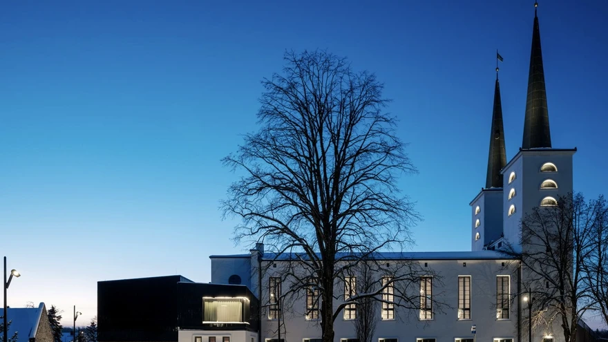 Kui kirik 1940 tegutsema asus, polnud selle tornidel kiivreid. Need said majale pähe alles 2025. | foto: Tõnu TunnelUue aasta hakul avanenud Ukuaru on valmistanud juba palju rõõmu ja üllatusi. Algselt kirikuks ehitatud hoone akustika on võrratu, interjöörid meeldivad – hubased, ent pidulikud.