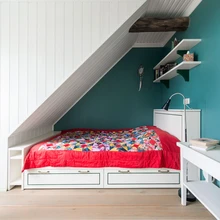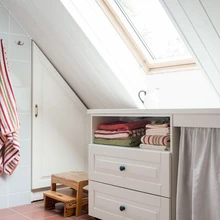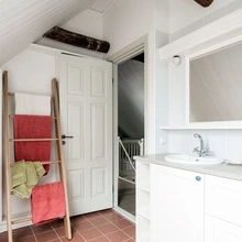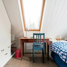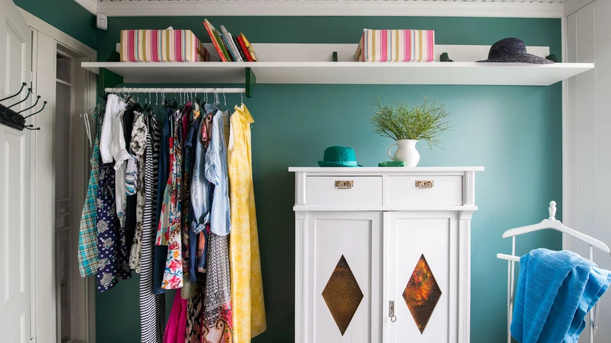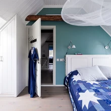 Valge uks on heaks taustaks värviliste riiete eksponeerimiseks, mis toa muude värvidega harmoneeruvad. | foto: Terje UgandiVana metsavahitalu Lääne-Virumaal pole tihnikust sisse piiratud, see seisab metsa ja mere piiril, olles avatud tuultele ja valgusele. Neljaliikmeline perekond, kes iga päev töö ja kooli tõttu Rakveres elab, kutsus vanasse majja avarust ja funktsionaalsust juurde tooma sisearhitekti Liis Tarbe.