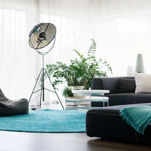 Külmad kivipõrandad asendati suitsukarva tammeparketiga ja hele värvigamma elegantsete tumedate puidutoonidega. Endisest basseiniruumist kujundati tõeliselt õdus elutuba, kuhu mahub kogu pere mõnusalt istuma, suhtlema ja telerit vaatama (televiisor, kusjuures, on suurim saadaolevatest; väiksem mudel poleks sedavõrd suurde ruumi ilmselt sobinudki). Hubase meeleolu lisamiseks on tuppa toodud suur ja mugav diivan firmalt B&B, rikkalikud kardinad ning pehme vaip Eesti tekstiilidisainerilt Annike Laigolt. «Pehmus sobib siia hästi!» lisab Mari Koger.