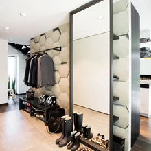 Läbiv värvitoon, mis kogu eramu interjööri iseloomustab, on efektne must. Sisearhitekti lemmiktoon haakus õnneks ka perenaise eelistustega ning musta värvi suhtes pikalt läbi rääkida ei tulnud. Kõige konkreetsemalt on must toon esindatud teisel korrusel asuvas vanemate magamistoas. «Nii musta magamistuba polegi ma varem teinud,» märgib Mari Koger.