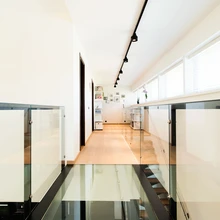 Suurima muudatusena ehitati esimesel korrusel asunud ebapraktiline basseiniruum ümber avaraks elutoaks. Kolmest küljest klaasseintega ümbritsetud basseiniala asus kohe elutoa kõrval ja oli klaasist lükandustega viimasega tihedalt seotud. «Koju tulles oli tihti tunne, nagu siseneks ujulasse,» meenutab perenaine. Elutoa valge läikiv kivipõrand ja klaasist trepp oma steriilsuses rõhutasid omakorda kõledat ruumimuljet.