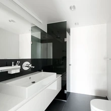 Vannitubades on kasutatud monokroomset suuremõõdulist seinaplaati, mis annab ruumidele rahuliku ja puhta ilme. Korteri üks olulisi lisaväärtusi on kahtlemata avarad päikese poole avanevad terrassid. Väiksem terrass kulgeb ümber esimesel korrusel asuva peamagamistoa ja kabineti ning suur terrass jääb elutoa kõrvale - uhke väliruum on sisustatud Taani tootja Cane-line õuemööbliga ning haljastus planeeriti koostöös Rehepapp Aiakujundusega. Suure korteri puhul on valgus, vaated ja ilmakaared sama tähtsad kui eramaja kavandades. Selles kodus on kõik suurepäraselt paigas – hea asukoht, hästi toimiv ruumiplaan ning ajatu, kuid samas mõnusaid kihistusi pakkuv sisekujundus, millele elanikud saavad lisada oma isikliku mõõtme.