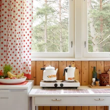 Eriti dekoratiivselt mõjub erksa punase värvi kasutamine interjööris. Perenaine Ivi oli punasesse värvi kiindunud ja kasutas seda ohtralt ka suvemaja sisustades. Elutoa laud ja toolid on erkpunased. Köögis, mida on samuti hoitud muutumatul kujul, leiab tollele ajale iseloomulikke punased valgete mummudega lauanõud ja valged punaste mummudega kardinad, mis mõjuvad armsalt ja nostalgiliselt. Köögi seinal on alles retseptide väljalõiked tollastest välismaa-ajakirjadest.