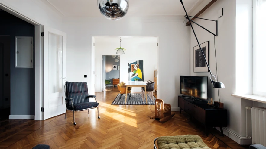 Puuduvad mööbliesemed otsiti kokku peamiselt vanakraamipoodidest ja Ikeast, sobitades kokku eklektilise, ent üksteist täiendava terviku. Väärika ja ajaloolise kesta sisse ei kardetud luua paindlikku, elanike isikupära peegeldavat ning eri stiile ja ajastuid kombineerivat tervikut. Liiga rangelt ega jäigalt pole ka ükski asi paigas – väikese lapse ja soovide muutumise tõttu tõstetakse korteris mööblit pidevalt ümber. Kunstil on siin kodus väga eriline koht ja seda leidub nii maalide, graafiliste lehtede, fotode kui ka plakatite näol. Peale vabade seinapindade on esiku pikas seinas avatud pop-up-galerii, mida pidevalt uute teostega täiendatakse. Lemmikud on Austraalias elanud väliseesti kunstnik Karl Manberg, Berliinis resideeriv Eleny Kasemets, illustraator Marju Tammik, klassik Jüri Arrak ja paljud teised.