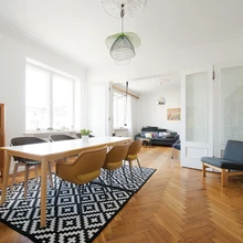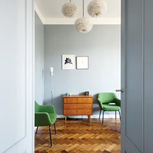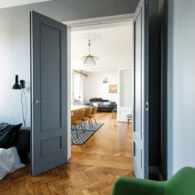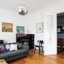 Võimalikult palju algsetest detailidest, seal-hulgas uksed, kardinapuu, parkett ja laekarniisid, õnnestus säilitada ning taastada. | foto: Terje UgandiEestiaegse kivimaja väljapeetus ja mõningane elitaarsus ei heidutanud Mari-Liisi ja Martinit looma ühte sellisesse hubast, sooja ning stiilide paljususele ja külalistele avatud kodu.