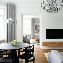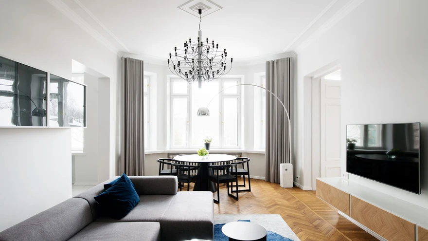 Kadrioru villalikus elumajas asuvale korterile on omased kõrged ja õhurikkad ruumid ning uhked vaated akendest. | foto: Terje UgandiAce of Space’i sisearhitektid Ines Käärma ja Ingrid Songisepp on leidnud 1930ndate algusaastate majja loodud interjööris kauni kooskõla ajastutruu ja nüüdisaegse kujunduslaadi vahel. Avaras korteris on kõrvuti ajaloopärand ja uusim tehnoloogia, mis tagab elanikele peale ilusas ruumis toimetamise ka tervisliku sisekliima.