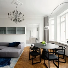 126 ruutmeetri suuruses korteris oli säilinud palju algseid detaile, mida juba korteri eelmised elanikud olid osanud väärtustada ja alles hoida. Kuna uued omanikud soovisid ruumilogistikat enda pere jaoks pisut sobivamaks kohendada ja lisada moodsa ventilatsioonisüsteemi, võeti kogu korteris ette põhjalik remont.