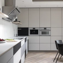 Materjalidest on disainer kasutanud Forbo mööblilinoleumi (Floorin) ja poppi Fenix Arpa nanolaminaati (Vivarec), millega on kaetud nii ukse- kui ka mitmed mööblipinnad. Mõlema vastupidava materjali matt viimistlus ja meeldiv siidjas tekstuur toovad monokroomsesse interjööri mõnusat pehmust ning vaheldusrikkust. Kaks materjali on valitud toon toonis rahulikes hallikates ja beežikates varjundites, mida tasakaalustab peitsitud saarespoon. Askeetlikku paletti lisavad aktsenti süsimustad valgustid ja mõned väikesed detailid, nagu käepidemed jms.