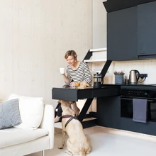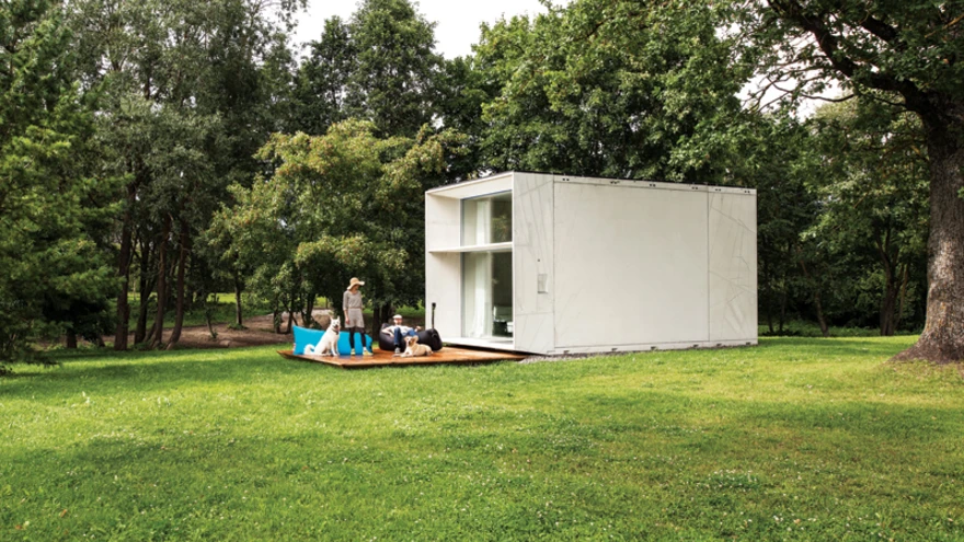 KODA esimene prototüüp asub praegu Kodasema tootmisalal Harkus kaunis roheluses. | foto: Terje UgandiSisustustoimetaja Agneta Land-Koskinen seadis end üheks ööpäevaks sisse Eesti uuenduslikus moodulmajas KODA ja proovis omal nahal järele, kas väikeses säästlikus nutimajas on kõik lahendused mugavalt kasutatavad ja otstarbekad ning kas ruumi puhas niiske õhk tagab hea enesetunde.