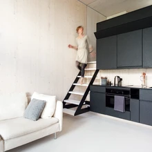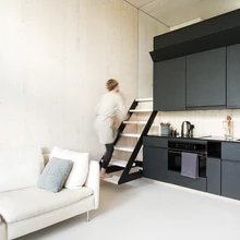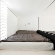 «Magamistuppa» pääseb köögi kõrval asuvast väikesest paraja kaldenurgaga trepist. Magamislavatsi laius on igati piisav kahele inimesele. Piirdes, mis eraldab magamistsooni elutoast, paiknevad pistikud arvuti või telefoni laadimiseks ning juhtpult valgustuse ja kardinate juhtimiseks. Piirde sisse on kavandatud ka riiul ja panipaik.