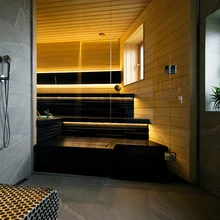Pisut romantilisemas ja lõbusamas võtmes kujundas perenaine lastetoad – siia on valitud toredad tapeedid ja praktiline eakohane sisustus. Eesti kodule iseloomulikult oli perele oluline suur saun koos eesruumi ning võimalusega astuda välja terrassile. Ruutmeetritega pole kokku hoitud ei leili-, duši- ega eesruumis. Pärast sauna saab istuda diivanile ja võtta külmikust värskendav jook; funktsionaalse poole pealt on puhkeruumi delikaatselt paigutatud ka pesumasinad ja muu majapidamises tarvilik.