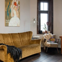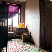 Tundliku käega renoveeritud mööbel, põrandad ja uksed pole perfektselt siledaks lihvitud, vanunud väljanägemisega pinnad toovad esile ajalooga interjööri karakteri ja võlu. Vaatamata läbi maja planeeringule kahele poole – tänavale ja sisehoovi – avanevatele akendele valitseb tumedas koloriidis tubades kergelt müstiline hämarus. Valgus ja varjud panevad elama mõne maski või nuku kapinurgal ning vana kiikhobuse toanurgas; kõrged peeglid ja klimtilikud naised kunstnik Kerttu Läti maalidel heidavad ruumi vaikseid salapilke.