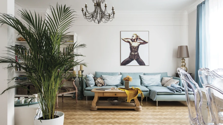 Ei Annelka ega Aleksander kirjeldaks ennast ise ilmselt kunagi aardeküttidena, ent ometi on nad avatud silmadega maailmas ringi vaadates leidnud aksessuaare, mis toovad korraga välja nii peremehe huvid kui ka rõhutavad korteri elegantsi ja luksuslikkust. On üllatav, kui paljud asjad Annelka tegelikult Ikea valikust leidis – lühtrite, väärika kalasabaparketi ja pilkupüüdvate söögilauatoolide kõrval on nii Ikea diivan kui ka riiulid head rahulikud kaaslased, mis hoiavad interjööri ka siiski meie ajastus.