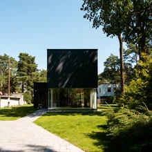 Arhitekt Andres Põime (Studio-3) projekteeritud kahekorruseline maja tõuseb Nõmme tüüpiliste elamutega vaiksel tänaval esile puhta ja selgevormilise arhitektuuriga. Tumedasse puitsõrestikku mähitud "kast" eristub väärika enesekindlusega, kuid ei lähe oma ümbruskonnaga vastuollu. Maja teise korruse suletum maht istub konsoolsena esifassaadi õhulisel U-kujulisel klaasseinal ja sirutub maja pikiküljel terrassi kohale.