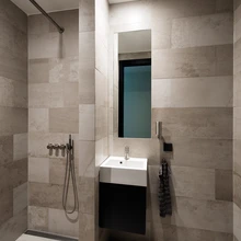 Vannitubadesse valis perenaine ülikvaliteetsed roostevabast terasest Vola segistid, Taani tootja d-line tarvikud ja Unidraini äravoolutrapid. «Valisime kõik kohtkindlad detailid – käepidemed, segistid, süvistatud valgustid jms – ülima hoolikusega,» selgitab perenaine. «Peale kvaliteedi oli meie tingimuseks disain, mis kestaks ka kümne aasta pärast. Järgisime motot «Pigem vähem, aga hästi!»