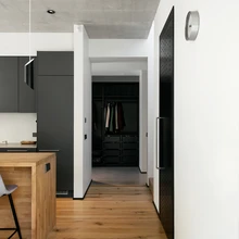 "Interjööri kandev idee oli minimalism, seda just lihtsuse mõttes," räägib sisearhitekt Liisa Põime. "Kõik pidi olema selge ja puhta joonega, hoidusime liigsest värvist ning erinevatest materjalidest." Nii valitsevadki interjööris neutraalsed toonid, valged seinad ja ehedad materjalid tammepuidu, vineeri ja betooni näol. Maksimaalselt on panustatud kvaliteetsetele, ajatutele ja n-ö moeülestele lahendustele.