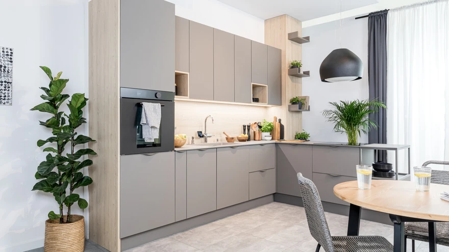 Vastupidiselt läikivale on matid pinnad vaoshoitumad, minimalistlikud, soojendavad optiliselt ja mõjuvad interjööris rahustavalt. Nad sulanduvad ka palju paremini puiduga, mis on looduslähedasest stiilist inspireeritud sisekujunduse asendamatu element. Kõik see tähendab, et selliselt kujundatud köögis on puudutamisel mõnusa sametise pinnaga matt mööbel parim lahendus. Esifassaadid peaksid olema siledad, ilma dekoratiivsete detailide või massiivsete käepidemeteta – panustage delikaatsusele ja ajatutele lahendustele.