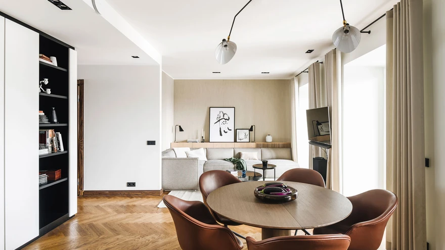 Interjööris valitsevad mahedad pruunikad-beežid toonid, mis annavad sisekujundusele õdusa ja sooja ilme. | foto: Tõnu TunnelAvar, kolme magamistoaga korter asub südalinnas 1930ndatest pärinevas kortermajas, mis renoveeriti tervikuna paar aastat tagasi. Moodsa juurdeehituse saanud hoones on ühendatud kaks ajastut, sarnaselt arhitektuuriga põimuvad erinevad stiilid ka sisearhitekt Hanna Karitsa loodud korterikujunduses.