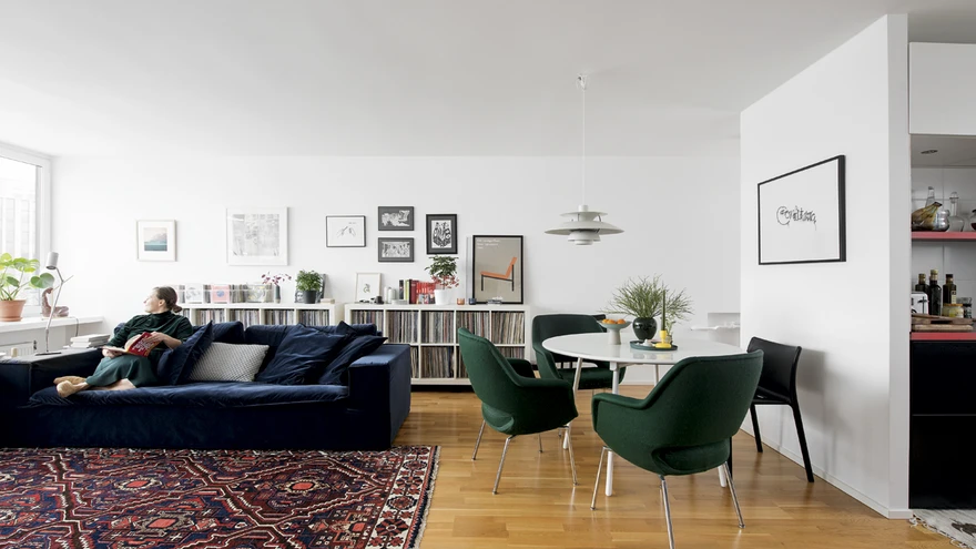 Alguses sooviti välja vahetada ka köök, aga kuna lahendus on igati funktsionaalne ja mustvalged kapid silma ei riiva, jäeti uue köögi sisustamise projekt esialgu ootele. Sisearhitekti kaasamisele disaini- ja loomevaldkonnas tegutsevad noored korteriomanikud ei mõelnud. Pealegi oli lõuend, millele oma nägemus üles ehitada, korteri hea ruumiprogrammi ja puhaste seinte näol olemas. Suur osa sisustusest – vintage-mööbel, vaibad, riiulid – tuli kaasa eelmisest elamisest. Ka graafikat, fotosid, keraamikat ja teisi toredaid ning oma lugu jutustavaid detaile oli kogunenud omajagu.