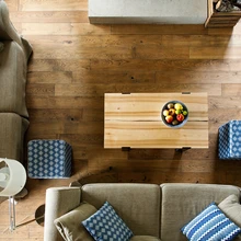Et elutuppa asjatult lahtist mööblit ei koguneks, tehti akende alla laiad aknalauad, kus saab mugavalt istuda või niisama pikutada. «Tegelikult sai laiade aknalaudade idee alguse pikast söögilauast, mille ümber oleks vaja olnud päris palju toole. Istumiseks sobiva kõrgusega aknalaud osutus heaks alternatiiviks,» on ka pererahvas rahul. Kaks pikka söögilauda, millest üks seisab elutoas ja teine terrassil, said valmis juba siis, kui maja veel ehitati. Toekad mööblitükid seisid pool aastat päikese, vihma ja tuule käes, et saada juurde vanutatud ja ehe ilme.