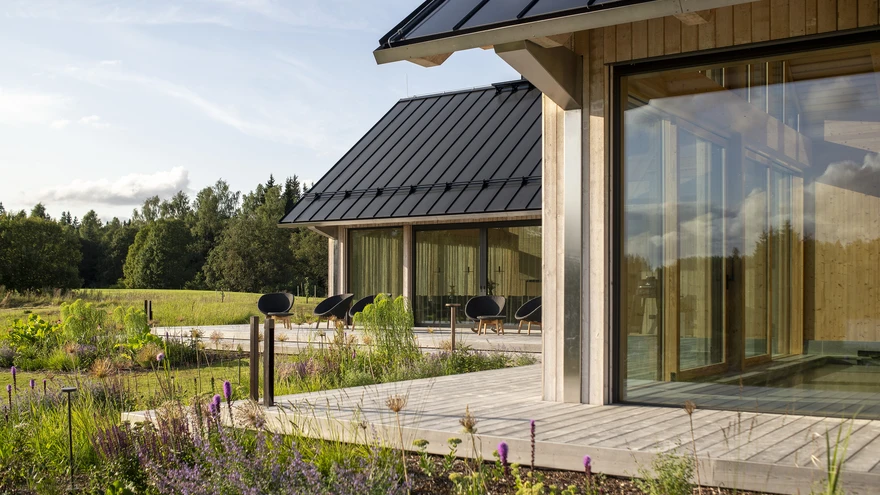 Suuremad klaaspinnad on suunatud õhtupäikese poole, mida nautida maja ümbritseval terrassil. | foto: Terje UgandiKeset Lõuna-Eesti maalilisi künkaid asuv nädalalõpumaja on harmooniline sulam kohalikust ehitustraditsioonist, siinsest materjalikultuurist ja ärksalt moodsast lähenemisest.