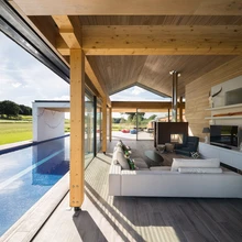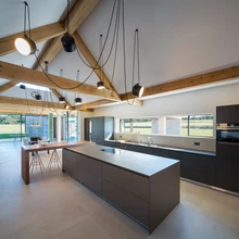 Põneva ilme on saanud ka siseruumid – erinevatest katusenurkadest tingituna pole tubades standardseid lagesid, uhkelt on esitletud kandvaid talasid ja puitlaudist. Interjööriski kohtuvad harmooniliselt uus ja vana. Moodne majapidamine Suffolkis on õnnestunud näide sellest, kuidas ajaloolist ja nüüdisaegset arhitektuuri on võimalik terviklikult ning huvitavalt ühendada.