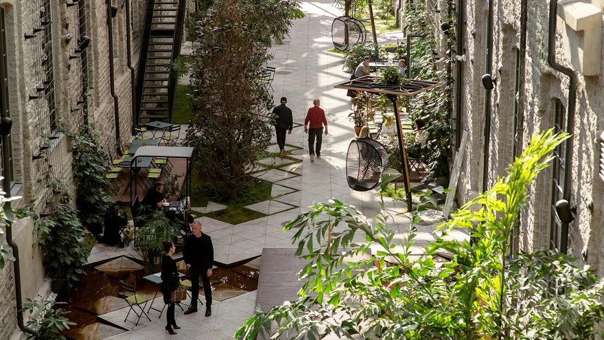 Kunagisest sisetänavast saanud galerii on kvartali töötajatele suunatud ühisala. | foto: Terje UgandiArhitektimõte ja roheliste sõrmedega aednik on aidanud kalgist industriaalalast teha oaasi.