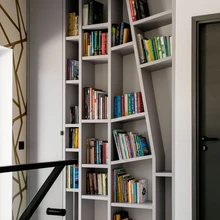 Muidu väga põhjamaiselt korralikku majja toovad mängulisust tapeedi justkui käsitsi maalitud asümmeetrilised vormid ja kujundusega haakuvad kapid-riiulid. Kogu mööbel on valmistatud sisearhitekti jooniste järgi eritellimusel, erandiks vaid esimese korruse söögilaud ja toolid ning pehme mööbel.