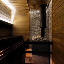 Isegi kamin jätab esmapilgul mulje, nagu poleks ka selle valmistamisel kasutatud kive ega plaate – tegemist on siiski vaid visuaalselt pappi meenutavate keraamiliste plaatidega.