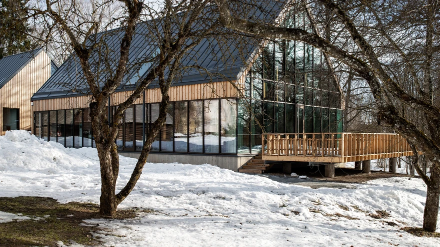Kompleksi peaprojekteerija oli arhitektuurselt ja administratiivselt võimekas KOKO. | foto: Terje UgandiPalamuse vana kihelkonnakool on kahtlemata mitme põlvkonna eestlaste jaoks olnud koolielu sümbol. Eelmise aasta lõpus valmis ajaloolise koolimaja kõrvale uus külastuskeskus, mis paelub nii arhitektuuri kui ka Eesti kooliloost kõneleva ekspositsiooniga.