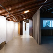 Omaette vaatamisväärsus on arhailisena mõjuv heledale liimpuidule vastanduv tumedate korkseintega keskne näitusesaal. Ülo-Tarmo Stöör selgitab, et korgi valik tuli sisearhitektidelt esiti akustilistel kaalutlustel ning ekspositsiooni tegijate algsest soovist tekitada ekspositsioonile tume taust.