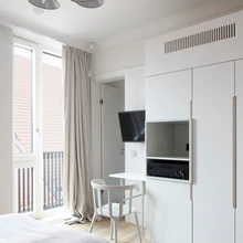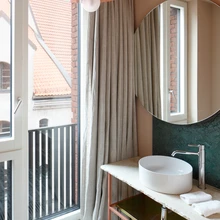 Värvilahenduse lähtepunkt on esimesel kahel korrusel asuv restoran St. Petrus, mis on andnud ühe pastelse värvinüansi – roosaka, helesinise või valkja – igale järgmisele korrusele. Ühtlaselt aprikoosikarva või taevasinist tooni ruumis sulavad seinad, laed ja sisustus üheks, tekstuurid puuduvad ning ruumipiirid kaovad. Seal pole ühtegi juhuslikku pisiasja ega liigset detaili. Killuke intensiivsust lisavad üksnes lahtise mööbli tooninüansid. Ülejäänu on puhas ja lakooniline foon, mis tõstab tähelepanu keskpunkti ruumis viibija ehk hotelli külalise. Hellitavalt mahedatesse värvidesse on samavõrra meeldiv sulanduda ja jätta kiirustav linnarütm ukse taha.