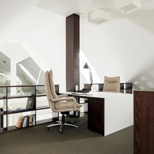 Tellija ainus kindel tahtmine oli saada välisvoodriga sarnased termotöödeldud saarest põrandalauad, muus osas jäeti kujundajale vabad käed. Hoone arhitektuurist tingituna oli see vabadus ühtaegu piirav ja inspireeriv. Tume põrand ja arhitektuurne konfiguratsioon nõudsid enda kõrvale heledaid ja valgustpeegeldavaid seinu ning sisustust. Neid elavdavad üksikud värvilaigud tapeedi või vaiba näol.