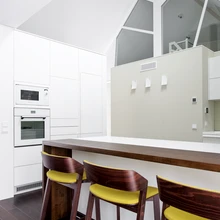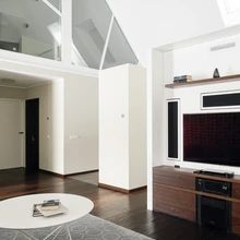 Orgaanilise lahendusena tõsteti voodid kõrgemale – nii tekkisid asemete alla mahukad panipaigad. Ühte voodialusesse mahtu paigutati tagasiastuvalt ka kõrvaloleva mängutoa TV-kapp, säästes niimoodi nutikalt omakorda mängutoa ruumipinda. Avatud köök-elutoa tsoneeris sisearhitekt samuti sisseehitatud mahuga, mille ühel küljel on kõrged köögikapid ja teisel TV-alus. Sisseehitatud mööbel võimaldas ühtlasi lahendada ruumi üldvalgustuse ja lülitite pistikute paigaldamise probleemi.