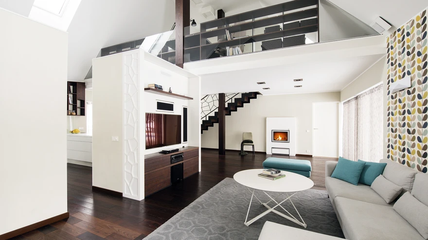 Interjööris on jäetud maja katusekalletest tulenev arhitektuurne vormimäng ja keerukus selgelt tajutavaks. Suurim ruum on avatud õhuruumiga köök-elutuba, millesse lõikub rõduna sisse teise korruse töötuba. | foto: Terje UgandiArhitekt Merje Müürisepa projekteeritud eramu Tartus Ujula tänaval pärjati möödunud aastal parima puitehitise konkursil Raitwoodi fassaadi eriauhinnaga. Žürii tõstis esile omapärast arhitektuuri, termotöödeldud puidu kasutust ja kõrget ehituskvaliteeti, mis kõik kokku loovad nauditava esteetilise terviku.
