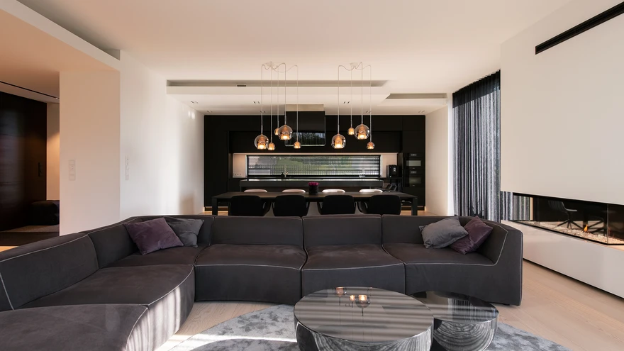 Ajatus mustvalges interjööris loovad meeleolu ehedad materjalid, stiilsed mööbliesemed, disainvalgustid jms. | foto: Terje UgandiPirital valminud stiilika arhitektuuri ja interjööriga eramu pererahvas kutsus maja autoriteks neile sümpatiseerinud loominguga arhitekti Stanislav Popkovi ning sisearhitektid Margit Teikari (Stuudio Tema) ja Tuuli Trei (Stuudio Taju).