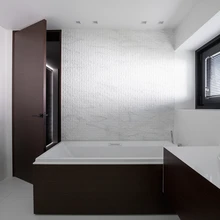 «Selles eramus on ka vannitoad mustvalged. Väga vahva oli kasutada üksnes musti ja valgeid keraamilisi plaate,» mainib Trei. «Kodudes eelistatakse enamasti looduskivi imiteerivaid variante.»