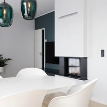 «Julge ja ootamatu valikuna tehtud mustad detailid (ukselingid, pistikupesad jms) üllatasid alguses. Olime rõõmsad, et kaasasime sisearhitekti, kes pakkus tavapärasest julgemaid valikuid. Sama lugu oli rohelise diivaniga,» sõnab perenaine.