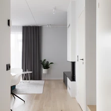 Sisearhitekt meenutab rahuloluga toonast piisava ajavaruga töögraafikut, tänu millele nad said pererahvaga arendusprojektis vajalikke muudatusi teha. «Planeeringu kallale me ei läinud, küll aga vaatasime üle ruumide funktsionaalsuse ning asendasime arendaja pakutud viimistlusmaterjalid, santehnika ning -keraamika ehk kogu komplekti oma eelistustega. Samuti korrigeerisime valgustus- ja elektriplaane ning audiolahendust, tegime modernsema trepikäsipuu,» selgitab ta.