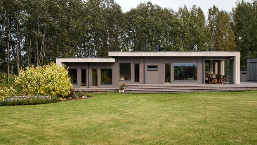 Mugavuse mõttes toimub kogu elu ühel tasapinnal ning elutuba pikeneb suveks katusega välikööki-söögituppa terrassil. | foto: Terje UgandiArhitekt Karmo Tõra on Võrus asuvale eramule loonud juurdeehitusena puitvilla, mille interjöör ja eksterjöör on harmoonilises kooskõlas. Puitu ülistav maja on korraga nii austusavaldus minevikule kui ka vihje arhitektuuri tulevikusuundadele.