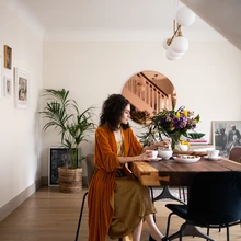 Esimesed mööblitükid, mis Pelgulinna jõudsid, olid Norr11 industriaalse ilmega suur söögilaud Rough ja mündiroheline Smegi külmik. Need kaks asja valis Anna tegelikult välja isegi enne seda, kui ta päris oma kodu leidis. «Ma ei vaadanud ühtegi teist lauda, see oli armastus esimesest silmapilgust,» naerab naine ja lisab, ta miksib meeleldi kokku industriaalsust ja retrostiili, metalli ja sametit, kaheksakümnendate erksat värvigammat ning sooja naturaalset puitu. «Püüdsin hoida tasakaalu, et interjöör ei hakkaks liialt meenutama ei vanaema suvilat ega poppi Taani kohvikut.»