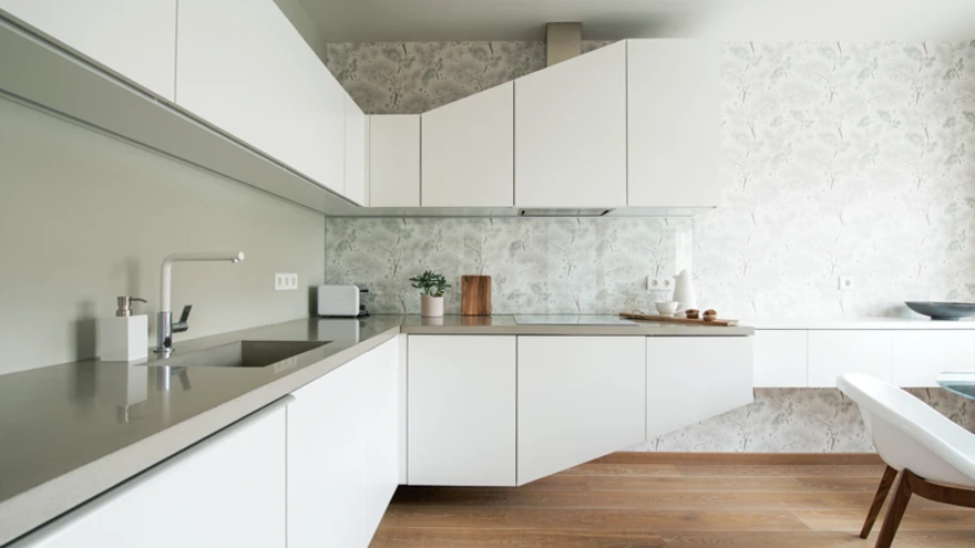 Peale vannitoa leiab killukese mustrit köögist, kuhu sobitati jaapanipärase männiokkamustriga tapeet, mis oma helguses rõhutab köögi avarust ja õhulisust. Köögimööbel on julgelt kandilise ja futuristliku joonega. Sisearhitekti sõnul ei tahetud kööki tavapärast lahendust, mistõttu ta projekteeris poolavatud ruumi n-ö õhku tõstetud kapid. Köögikapid, millel on osaliselt justkui nurk maha lõigatud, lisavad toredat dünaamikat.