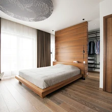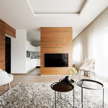 Peamiseks meeleolu loojaks on interjööris uhked spoonpinnad, mis hoiavad kogu kujunduse tervikuna koos. Varjundirikas pähklispoon toob ruumidesse sügava koloriidi ja mõjub ühtlasi tugeva aktsendina. Puidu elavat pinda tasakaalustavad neutraalsed värvitud seinad, väärikas mööbel ning mahedates toonides tekstiilid.