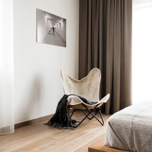Suurem osa korteri sisustusest on Kadri projekteeritud (valmistaja Mipla OÜ), vaid lahtine mööbel leiti firmadelt BoConcept ja Fritz Hansen ning salongi Strössel valikust. Nahkdiivanis ja suures tugitoolis on seitsmekümnendate aastate hõngu ning Andre Visnapuu foto elutoaseinal rõhutab šiki poissmehekorteri sarmi. Viimast on osanud sisekujundaja oma tööga tabavalt edasi anda. See on stiilne korter stiilses majas!
