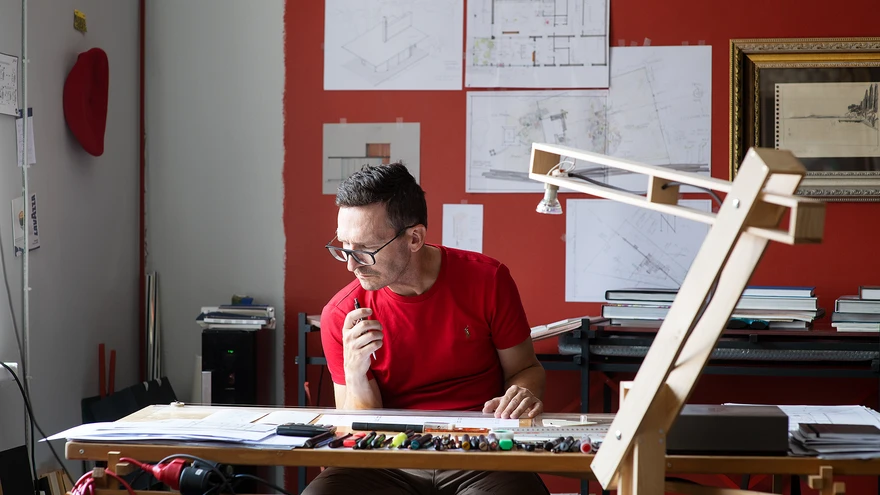 Liplap oma igapäevases töökeskkonnas, esiplaanil prototüüp põrandavalgustist. | foto: Terje UgandiTänapäeval kultuuritehasena tuntud Tartu Aparaaditehases asuvas ateljees Stuudio 100 toimetavad tekstiilikunstnik Aet Ollisaar ja sisekujundaja Madis Liplap, kelle fantaasialendu loomeprojektide teostamisel ja erialaste arutelude kulgu on mõjutanud selle paiga inspireeriv keskkond. Nende tegevuste tulemit – vaibad ja (sisustus)disainiobjektid, kokku 29 tööd − said huvilised vaadata juulis Kõrgema Kunstikooli Pallas galerii väljapanekul «Aega on aega ei ole». Seekord mängisid nad ideede ja ajaga.