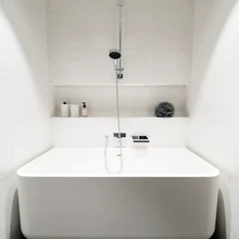 «Perfektne tulemus sõltub ennekõike kliendist – vastastikuses usalduses, teineteisemõistmises ja valmisolekus minna lõpuni välja,» nõustub ka sisearhitekt. «Võin öelda, et see on üks ilusamaid ja terviklikumalt õnnestunud kortereid, mille olen teinud. Ruum ise oli inspireeriv, interjööri ilmestavad kujundusega esile toodud erinevad sopid ja liigendused. Kui ruum hakkab elama juba ilma asjadeta – kaasa mängivad erinevad mahud, valgus, materjalid –, siis see ongi minu jaoks õnnestunud sisearhitektuur.» || D