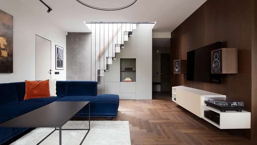 «Minu kliendiks oli seekord noor ja popp, disaini- ja trenditeadlik meesterahvas oma kaasaga,» selgitab sisearhitekt, kelle eesmärk oli kavandada omanike olemust ja elustiili toetav interjöör. Erinevate materjalidega on loodud sügavust, mõjusust ja tõstetud esile ruumiarhitektuuri. «Kasutasin küllaltki julgeid, tugeva karakteriga materjale ja mitmeid tonaalsusi, ent kokkuvõttes mõjub interjöör helgelt ja värskelt. Tume toon laseb heledatel pindadel ja ülejäänud värvidel elada.»