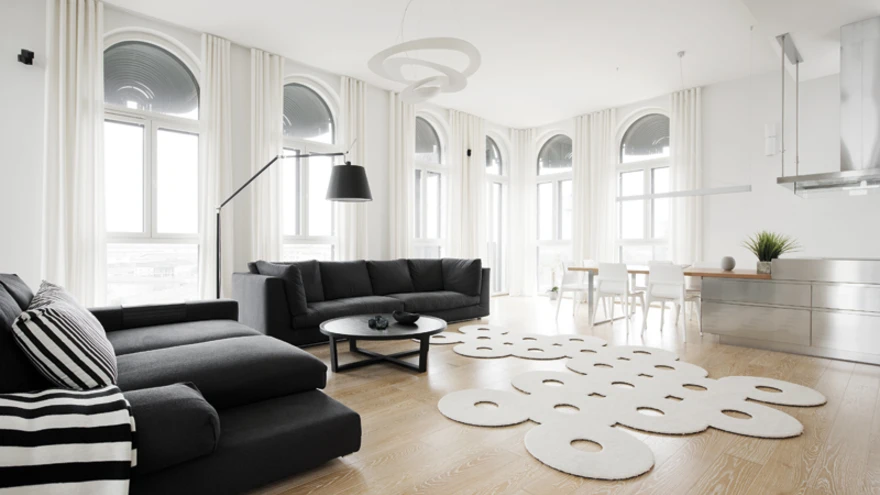 Korteri suurim ruum on elutuba, mis on täis valgust ja vaateid. Elutoa diivanid pärinevad firmalt Vibieffe (salong Emerante), valgustid firmalt Artemide (salong Laterna Magica), vaip firmalt Object Carpet (salong Tekero), köögimööbel firmalt Arclinea. | foto: Terje UgandiTallinnas Rotermanni kvartalis asuvat avarat katusekorterit on sisearhitekt Mari Kogeril õnnestunud kujundada kahel korral. Esimene kujundusprojekt jääb maja valmimise aega ja kui korter aastaid hiljem omanikke vahetas, tuli interjöör taas värske pilguga üle vaadata. Kõrgete akendega valgusküllased ruumid said väljapeetult šiki ja suurlinliku ilme.