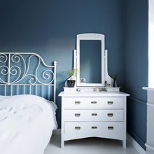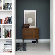 Köögisegistiga hakkas ideaalselt kahekõnet pidama messingust laevalgusti, mis oli ostetud Porvoo vanakraamilaadalt ja ootas oma hetke. Jan ja Birgit olid juba oma eelmisesse kodusse muretsenud Skandinaavia vanamööblit ning see lõi uues kodus taas särama. Toonimata valge sein sobib tumeda konjakitooni tiigipuidust mööbli taustaks ideaalselt. Värvide osas leiti, et messingust vannitoasegistid nõuavad enda kõrvale midagi väärikat. Kuna juba hakati mööda klassikalist rida minema, sobis vanadest lauanõudest inspireeritud koobaltsinine hästi. Magamistuppa leidis perenaine rohekama alatooniga sinise, mille sügavus tuleb eriti kaunilt esile süütuvalge lae ja põranda vahel. Kergelt nagisev laudpõrand ja vanamööbli taotluslikult parandamata jäetud defektid jutustavad oma lugu ning iga pisemgi detail, mis selles kodus silma jääb, moodustab vankumatult harmoonilise kooskõla kõige ümbritsevaga.