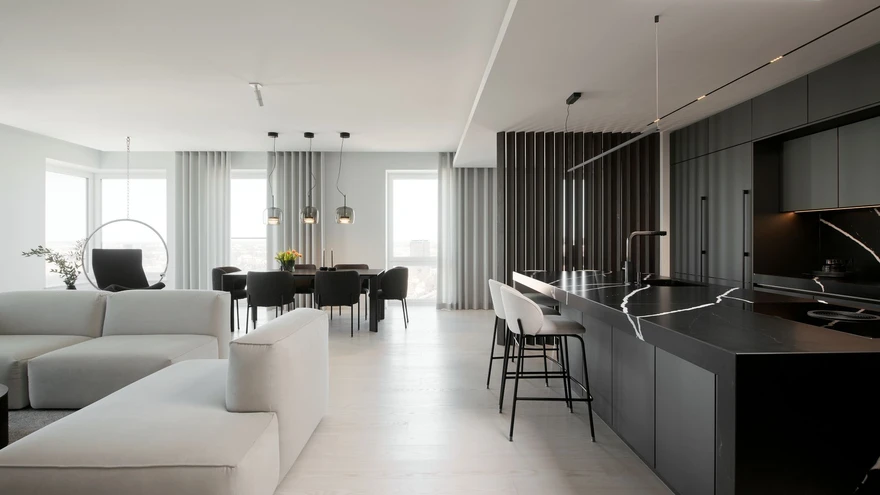 | foto: Terja UgandiArhitekt Martin Aunini meeskonna projekteeritud 2022. aasta betoonehitiseks valitud Järve tornides valmis sisearhitekt Margit Teikari (Stuudio TEMA) kavandatud penthouse.